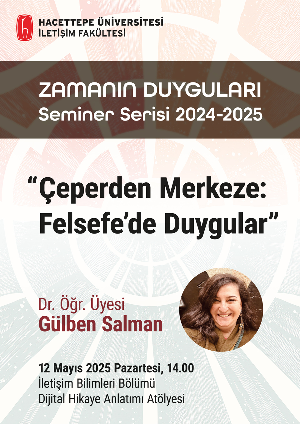 Bu sorular etrafında yola çıkan seminer programında, duygu ve duygulanımı bireysel tezahürlerden çok, toplumsal fenomen olarak ele alan yaklaşımlarıyla seminerler gerçekleştirilecek. Bu alanda çalışan akademisyen ve araştırmacıların katılımlarıyla Hacettepe Üniversitesi İletişim Fakültesinde yürütülecek bu seminer dizisinin hem ilgili literatüre dair fikir edinmemizi hem de duygu ve duygulanım tartışmalarının bize açabileceği yeni araştırma alanları üzerine düşünmemizi sağlamasını arzu ediyoruz. Bunlarla birlikte, parçası olduğumuz çağı ve toplumsal dinamikleri, çatışmaları ve bir arada yaşama biçimleriyle potansiyellerini farklı bileşenleriyle yorumlayabilmemizde ufuk açıcı olmasını umut ediyoruz.